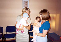 Занятия в нашем центре проводятся под музыку, используются детские песенки, русский фольклор (различные пестушки и прибаутки). Во время выполнения упражнений у малышей возникает замечательная возможность общаться со своими ровесниками (они четко «выделяют» других малышей и лучезарно им улыбаются), а мамы могут обсудить между собой нюансы развития своих ненаглядных чад, завести новых друзей по интересам и еще лишний раз убедиться, что их малыш – самый лучший и смышленый!