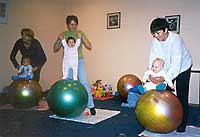 Не каждый ребенок имеет возможность ежедневно плавать в бассейне, гимнастический мяч замечательно моделирует неустойчивость водной среды. Упругая, неустойчивая среда необходима для развития вестибулярного аппарата, чувства равновесия, ритма и координации движений, а также для отработки рефлекса опоры. Работа на мячах неоценима в плане стимуляции всех опорно-статических систем тела. На мяче имитируются и тренируются: плавание, ползание и лазание – как необходимые для развития малыша этапы формирования опорно-двигательной системы. В упражнениях прорабатываются сенсомоторные координации (зрительно-, ритмо-, тактильно-моторные и др.), способствующие развитию нервной системы. Вестибулярная тренировка жизненно необходима для развития и нормального функционирования центров регуляции сердечно-сосудистой системы.