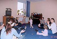 - прослушивание различных музыкальных шедевров; - упражнения на различение свойств музыкального звука: высоты, тембра, динамики, длительности; - знакомство детей с музыкальными инструментами; - формирование певческой интонации на основе детских песенок, фольклора и во время танцев с песнями; - формирование чувства ритма в движении под музыку; - закладывание основ мышления, музыкальной памяти, формирование музыкально-сенсорных способностей. Во время занятий внимание уделяется ролевым играм и развитию мелкой моторики; проводятся музыкальные праздники со множеством подвижных игр, от которых получают удовольствие не только малыши, но и их мамочки. Занятия неизменно проходят на высоком эмоциональном подъеме.